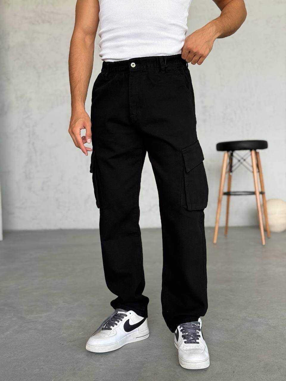 GABARDİN SİYAH KARGO CEPLİ PANTOLON