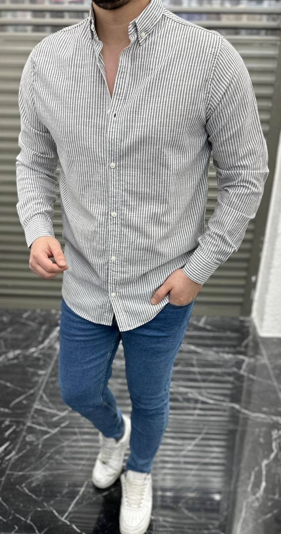 REGULAR KALIP ÇİZGİLİ GÖMLEK GRİ